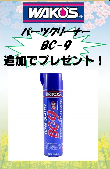 さらに【WAKO’S】パーツクリーナー、BC-9も追加でプレゼント!!